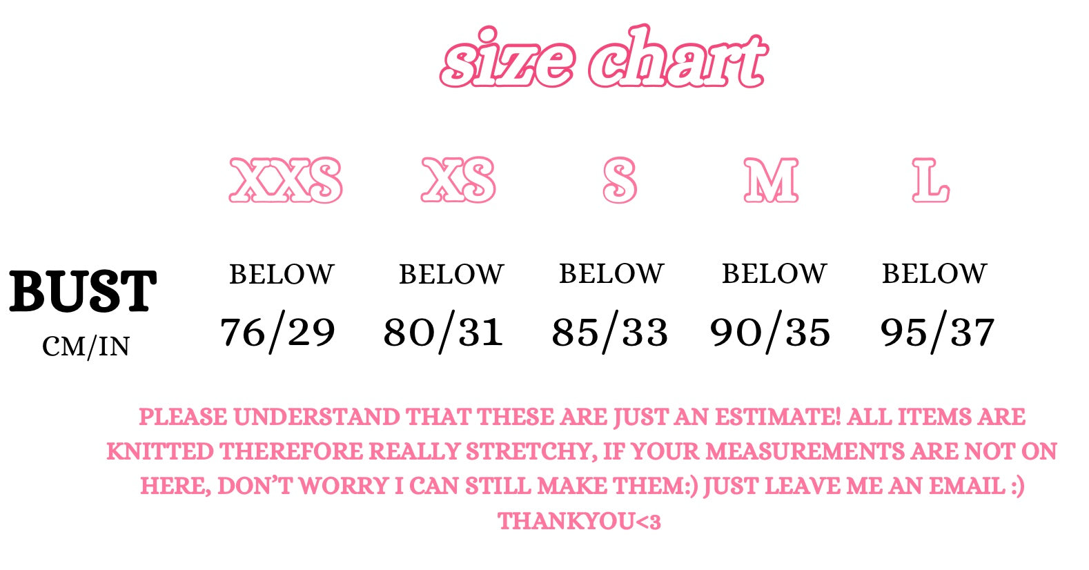 Models measurements listed below